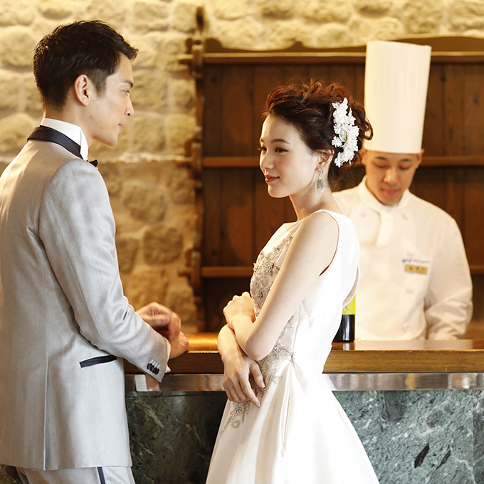 フランス料理、日本料理、パティスリーなどそれぞれの技を極めたプロフェッショナルが、おもてなしの要となる料理を創り上げます。フランス料理or和洋折衷料理をゲスト自身に選んでいただける「メールオーダーシステム」は当ホテルのオリジナルシステムです。いろんな思い出や「ありがとう」の気持ちを一皿の料理に込めて。