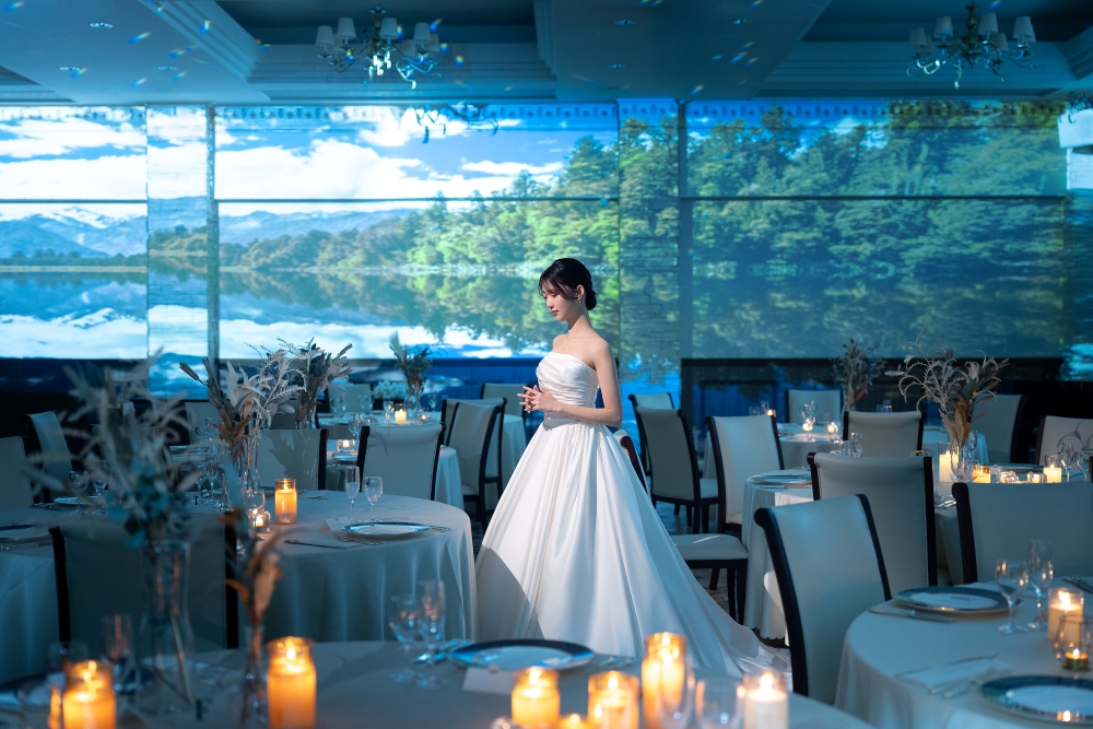 完全貸切でご案内するパーティー空間ではおふたりに合わせたコーディネートが叶います ガーデンが隣接しているため自由度の高いパーティーが人気です -