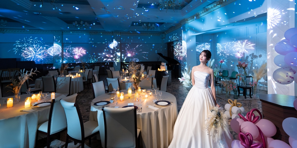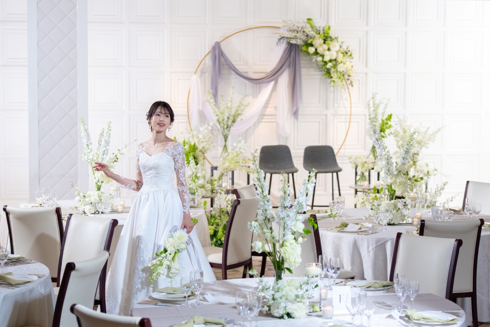 完全貸切でご案内するパーティー空間ではおふたりに合わせたコーディネートが叶います ガーデンが隣接しているため自由度の高いパーティーが人気です -