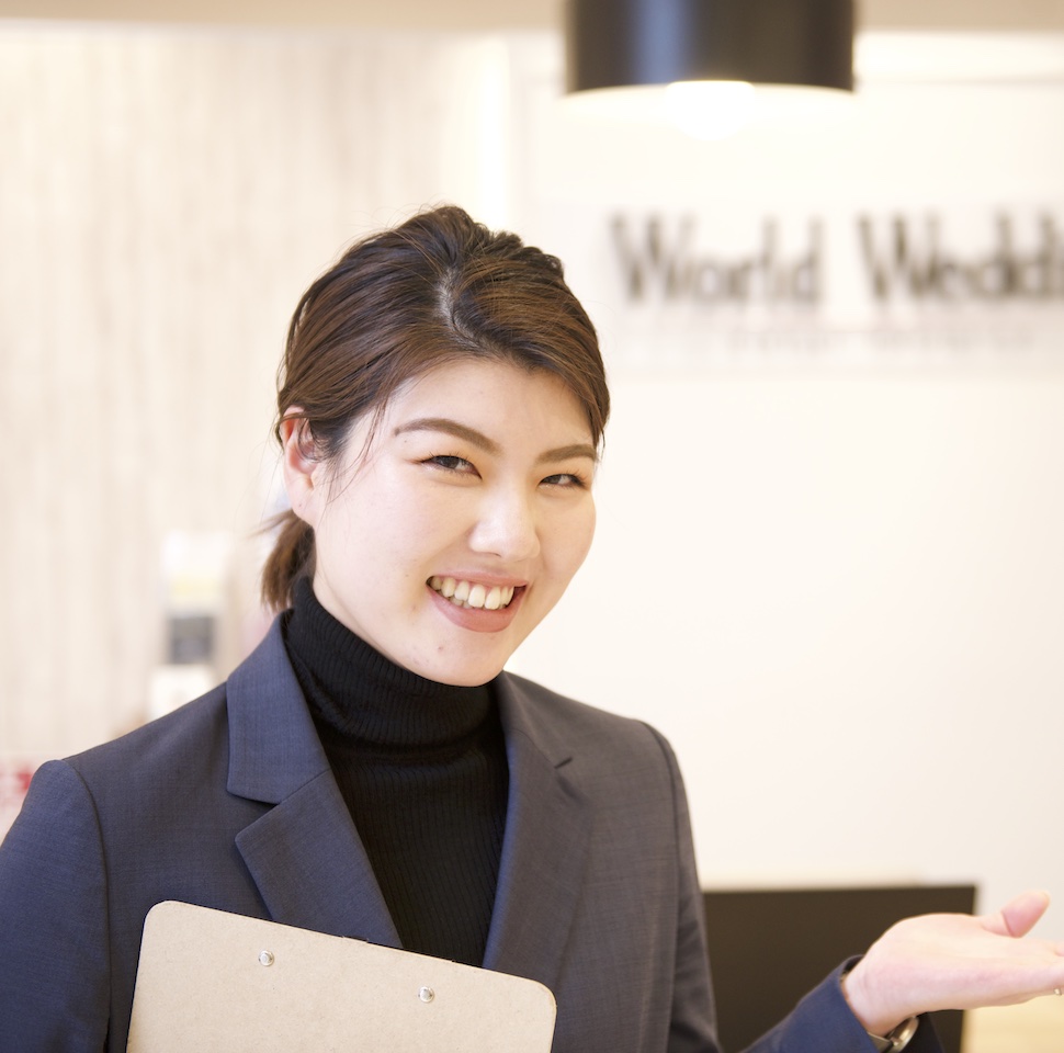ワールドウェディングのプランナーは、お客様の理想の結婚式を叶えるべく、とことん考え、プランニング。式場紹介だけではなく、装飾や演出なども一緒に考えます。