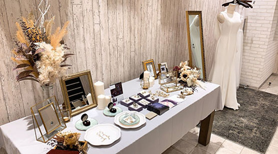 ドレスにも映えるのはもちろん、挙式が終わったあとでも愛用できる逸品です。試着はもちろん、商品ご購入のご案内もさせていただきます。
