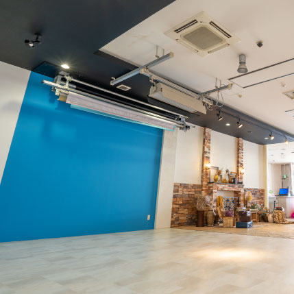 撮影専用スタジオのため、スタジオ面積は広く、天井も高くて開放的。そのため、三密も回避できます。もちろん、スタッフの感染予防対策も万全です。